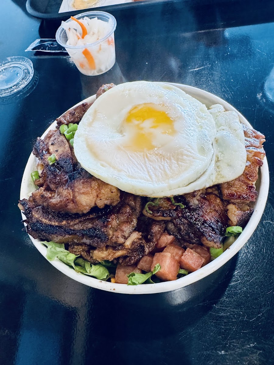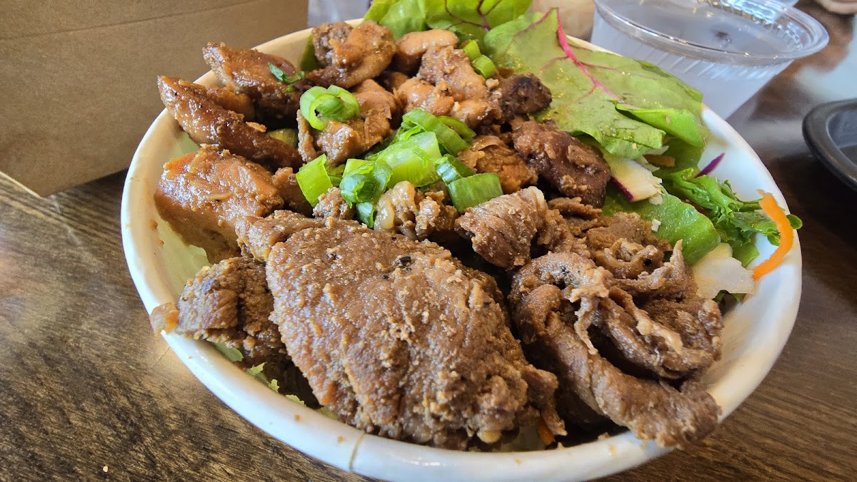 I was craving Korean bbq but bowl style and this spot was nearby. I ordered their marinated short rib bowl and I added extra proteins of spam, an egg and chicken with no rice, all salad. It was a phenomenal lunch overall. The flavor was definitely there. It was definitely pricey after I added all the extras, but still worth it. I’d definitely come back here again to try their other menu items.